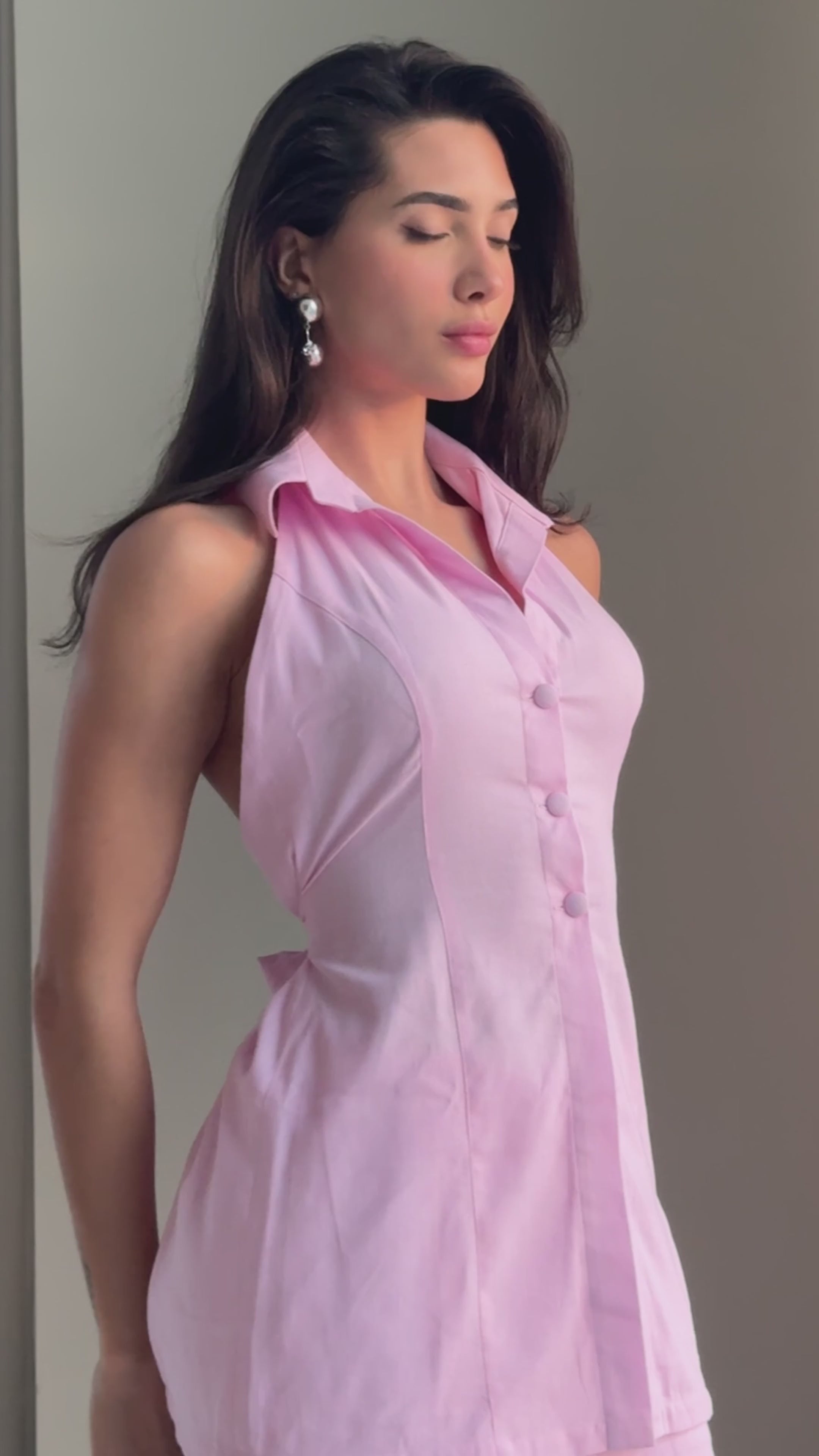 Our Cielito set features a mini skirt, crafted from lightweight and breathable linen, and a V-neck backless top that elongates your silhouette, creating a graceful effect with a vintage flair.