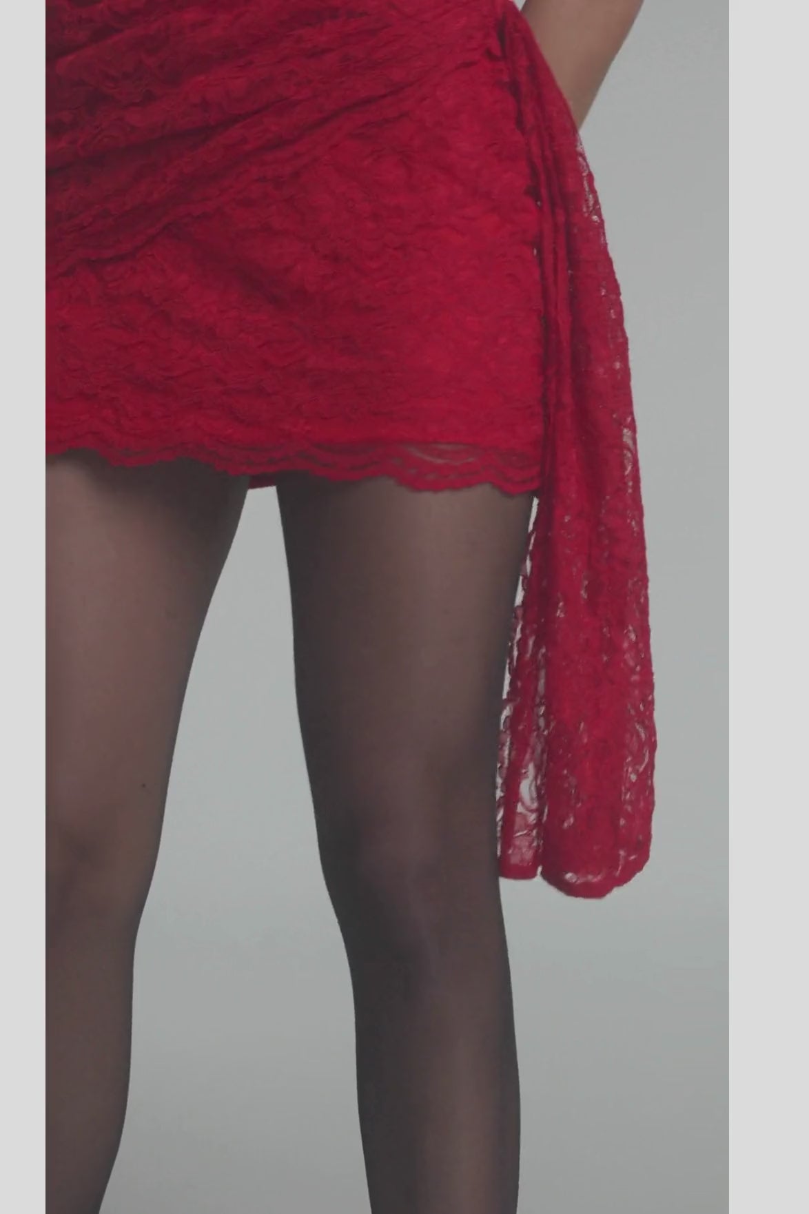 Turn up the heat with the Scarlet Sour Corset Dress, a red mini dress that’s as bold as it is beautiful. This dress features a functional boned corset, offering support and a striking silhouette, while delicate lace adds a touch of romance. The lined skirt ensures comfort, and the draped detailing along the hips accentuates curves for a sultry, sculpted look. Perfect for special occasions and nights you want to remember.